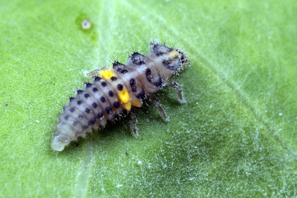 Eles não usam chapéus brancos, então você terá que aprender como eles são. Isso inclui todos os estágios de seu desenvolvimento. A ninfa joaninha, mostrada aqui, não é o inseto mais charmoso da natureza, mas é um aspirador de pó quando se trata de pulgões que atacam suas árvores!