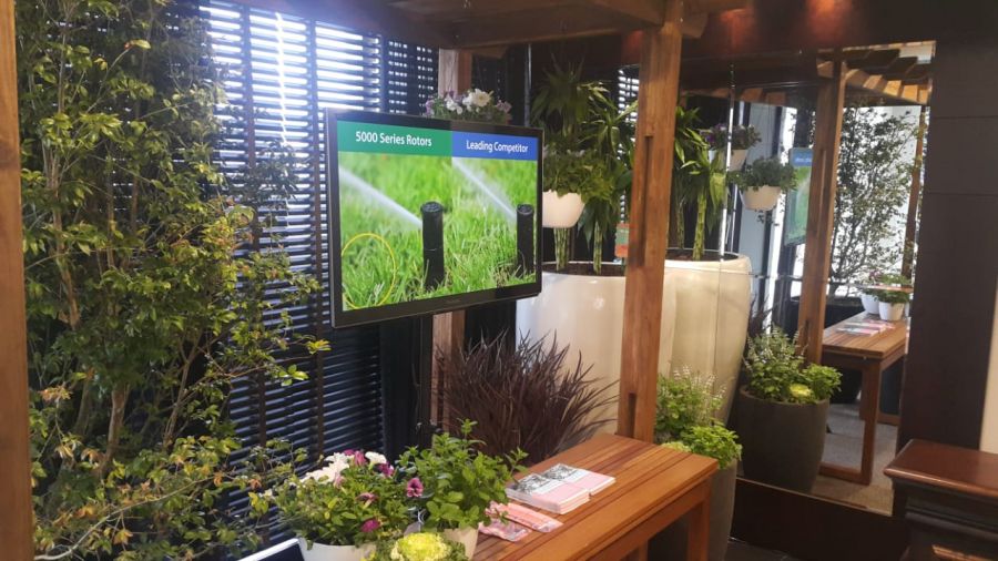 A participação também incluiu um stand com apresentação das especialidades: Paisagismo, irrigação automática de jardins, assessoria técnica em paisagismo e jardinagem.