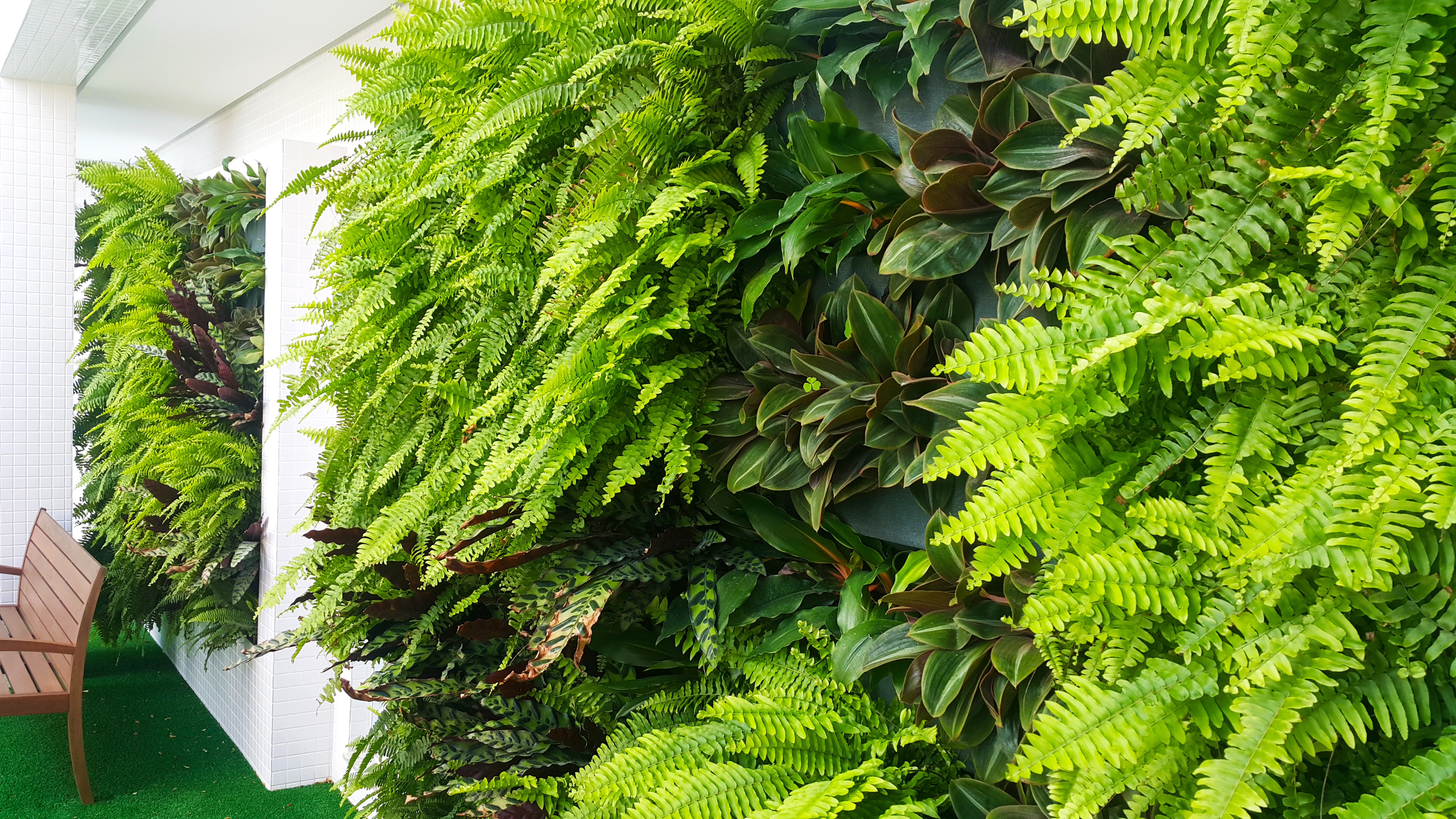 Alguns ambientes infelizmente não são propícios para paredes verdes naturais. Mas nem por isso é preciso ficar sem o verde das plantas! A melhor alternativa para essa situação é o uso de vegetação artificial, que atualmente apresenta bastante diversidade de espécies para composições originais e se moldam a qualquer formato de parede. Não precisam de irrigação nem de iluminação natural, logo, podem ser aplicadas a qualquer ambiente.