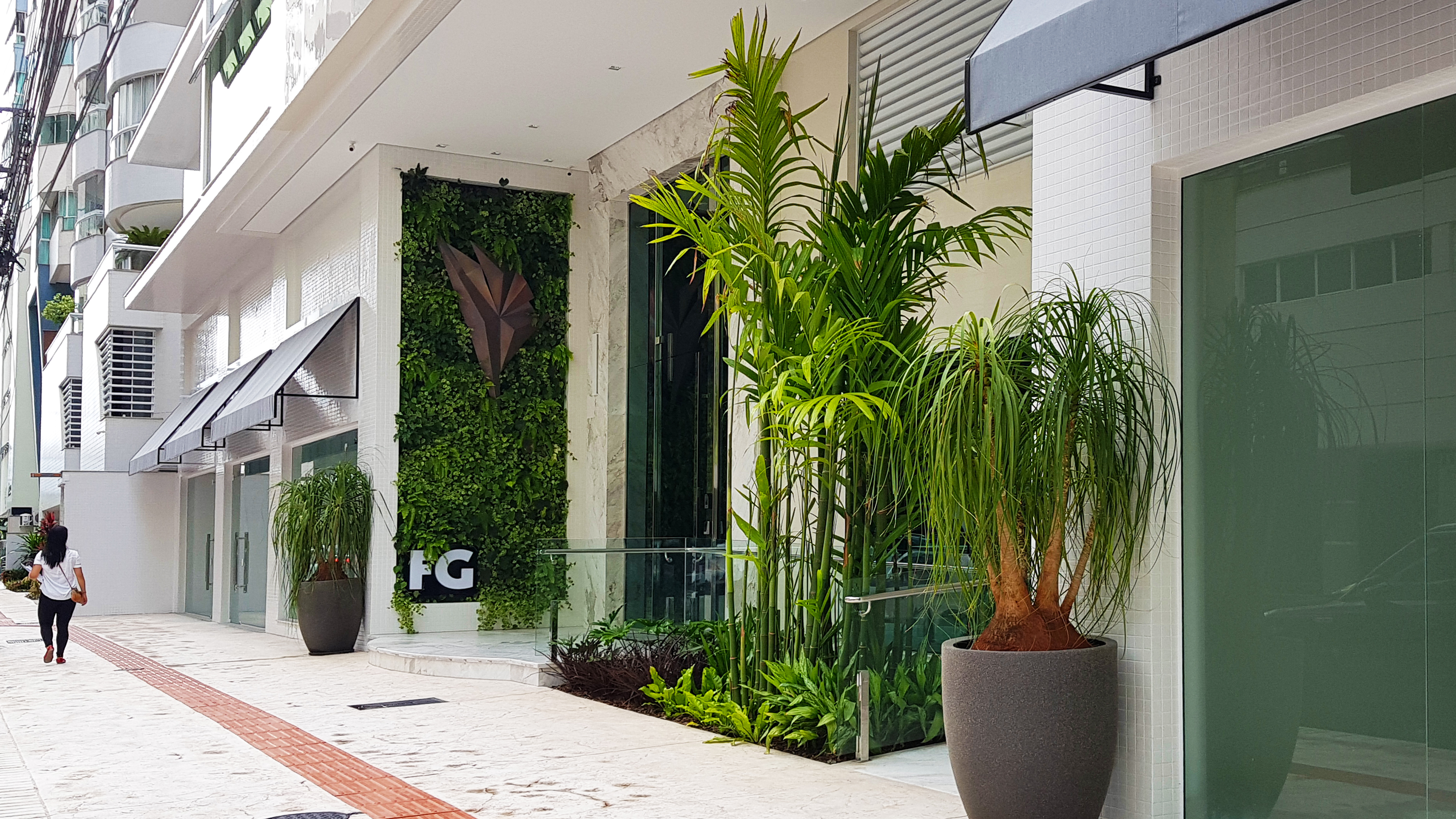 Nós do Grupo Le Nôtre, buscando tornar a parede verde artificial o mais natural possível, aplicamos nossos conhecimentos técnicos de agronomia em relação as vegetações naturais na hora da escolha das vegetações artificiais. Dessa forma conseguimos montar composições artificiais que não denunciam a falsidade da vegetação, através do uso de plantas que sobreviveriam naquele local e condição caso fossem naturais. Caso contrário, qualquer pessoa que possua um pouco de conhecimento sobre paisagismo, logo percebe a falta de coerência e conclui com certeza que é uma parede verde artificial. Não é o que queremos, certo?!
