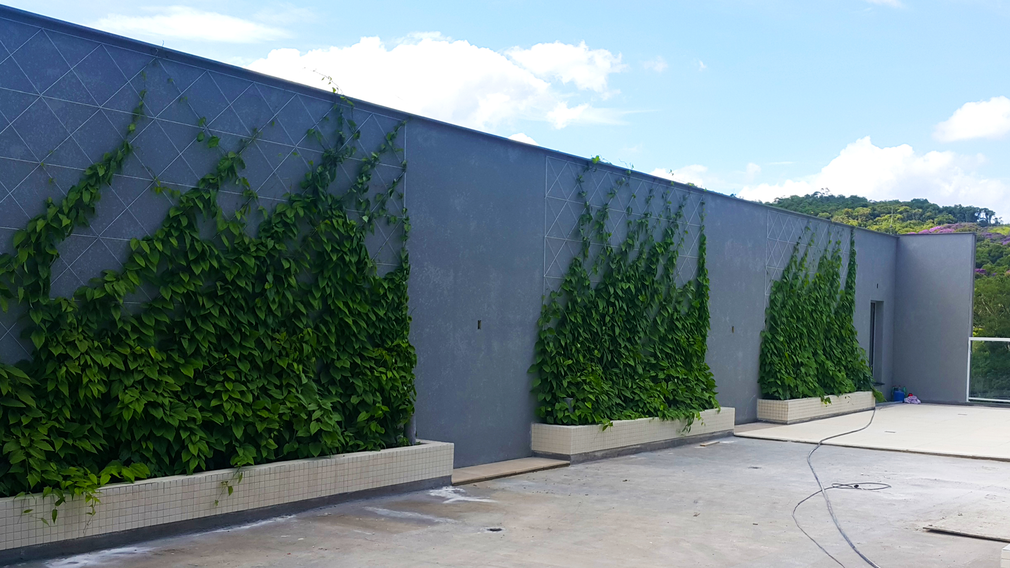 Existe ainda outra opção de parede verde com vegetação natural que apresenta um custo mais econômico do que as tradicionais - utilizando trepadeiras. Através de treliçados fixados na parede, que podem ser de nylon, aço, arame, entre outros materiais, as trepadeiras se agarram e se desenvolvem, tomando conta de toda a fachada.